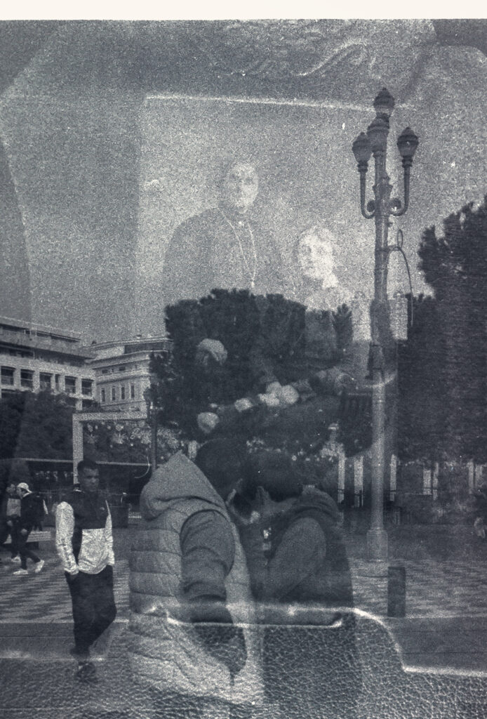 This is my experimental project. I shoot films while traveling. Then I reload this film again into the camera and shoot a second of the old photographs on top. All these photos were shot on camera Olimpusmju2.